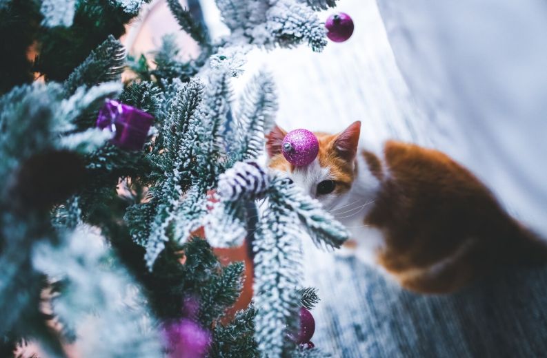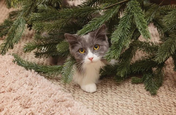 Cum îți protejezi felina în preajma bradului de Crăciun