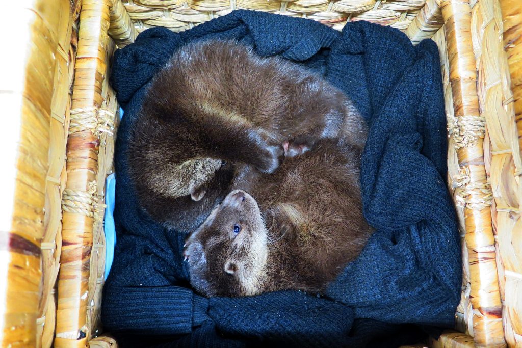 Puii de vidră au fost despărțiți de mama lor după ce un râu din zonă a ieșit din matcă