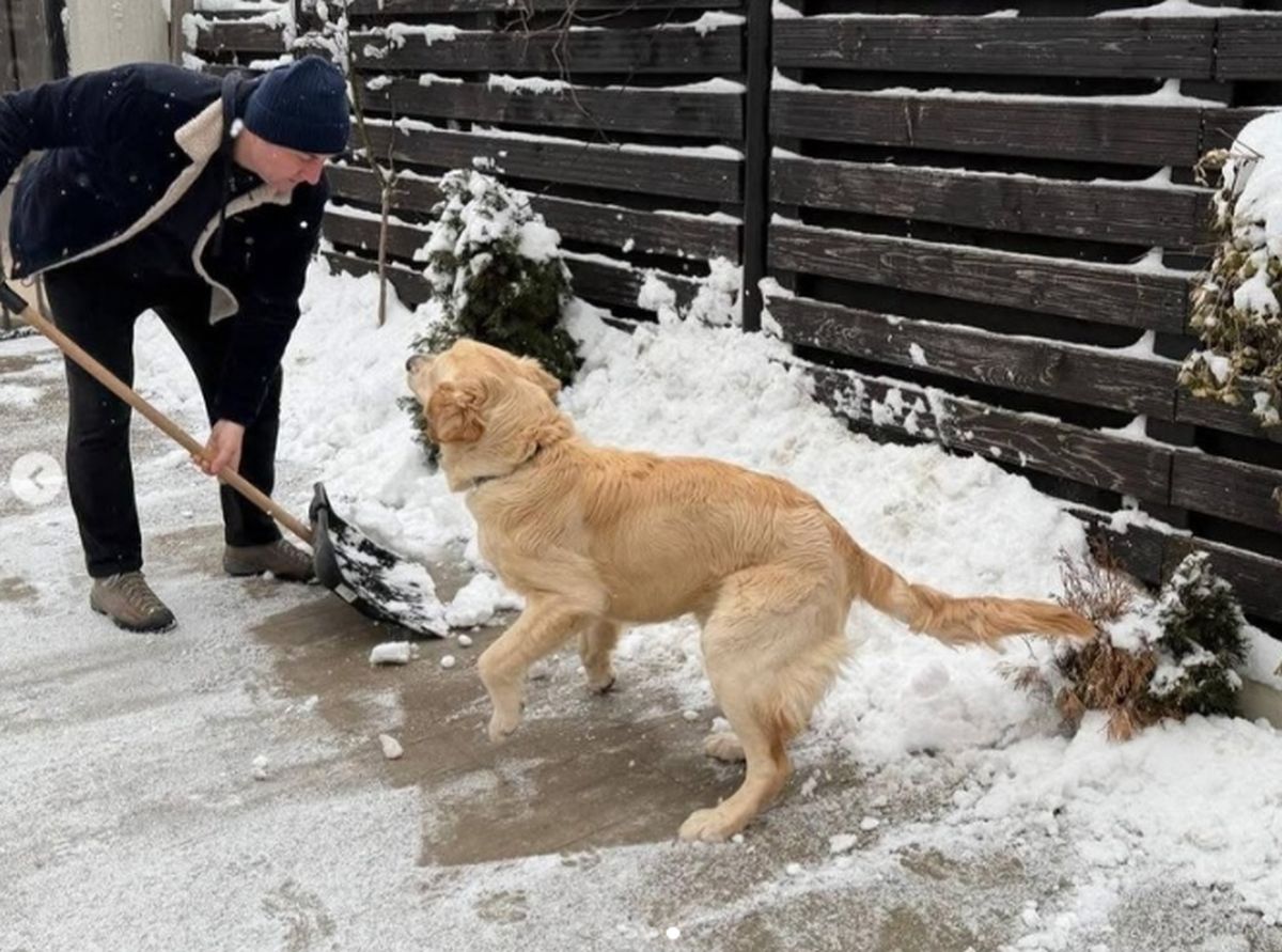 Paul Moldovan, surprins la deszăpezit alături de câinele său, Barney