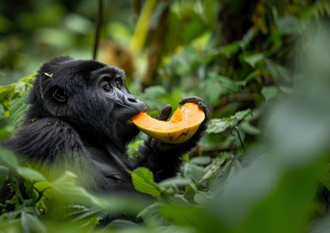 Imagini virale cu un grup de cimpanzei care împart un fruct uriaș